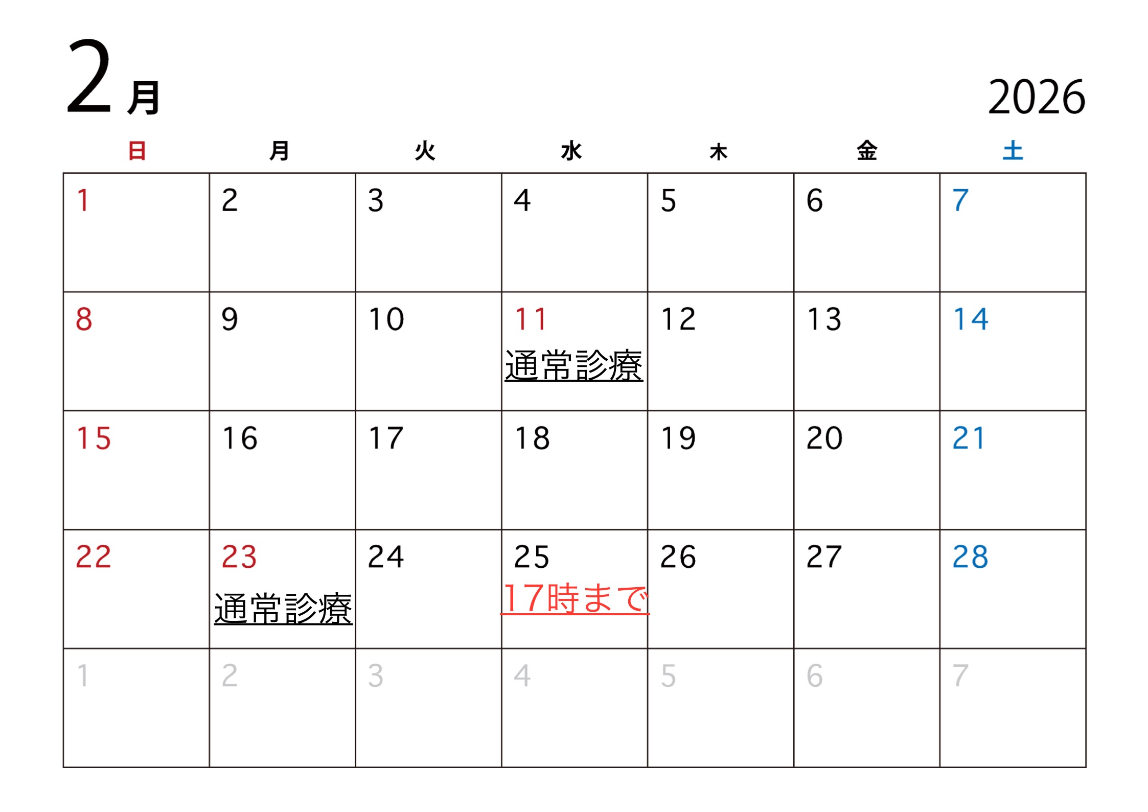2月の診療のお知らせ